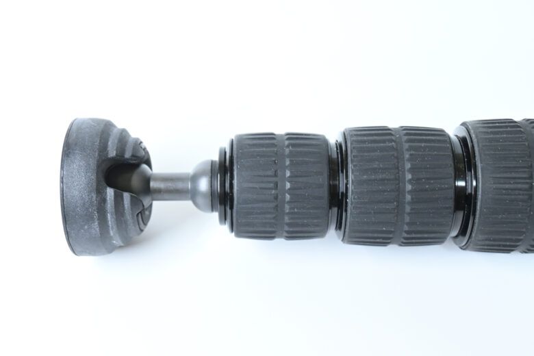 ・金属の軸とゴムの部分の接合がめちゃくちゃ渋く、三脚を上から押し付けないと自由に動かない。下手すると横向きのまま自立してしまう。一番ダメな点がこれ。