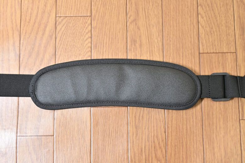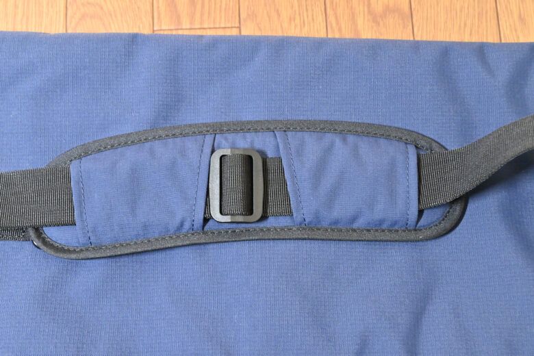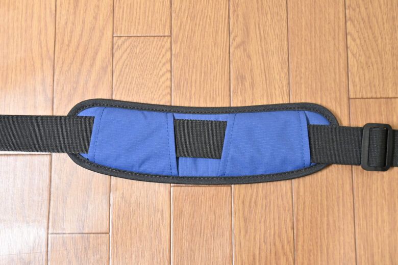 肩掛けパッドはややカーブしていて体にフィットする形状で、体に接する部分には滑り止めがついています。