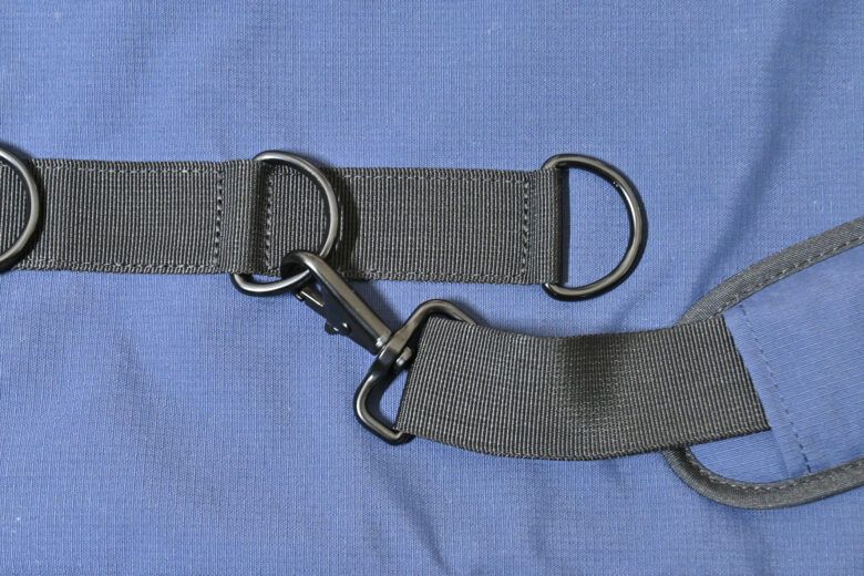金具類はロールトップ型三脚ケースとほぼ同等で、ある程度の太さがあり、耐久性は問題が無さそう、一方で、重い部材ではなく、軽い部材が使われていますので、肩掛けベルトが重いと感じることはありません。