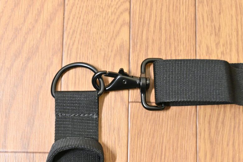 金具類はある程度の太さがあり、耐久性は問題が無さそう、一方で、重い部材ではなく、軽い部材が使われていますので、肩掛けベルトが重いと感じることはありません。